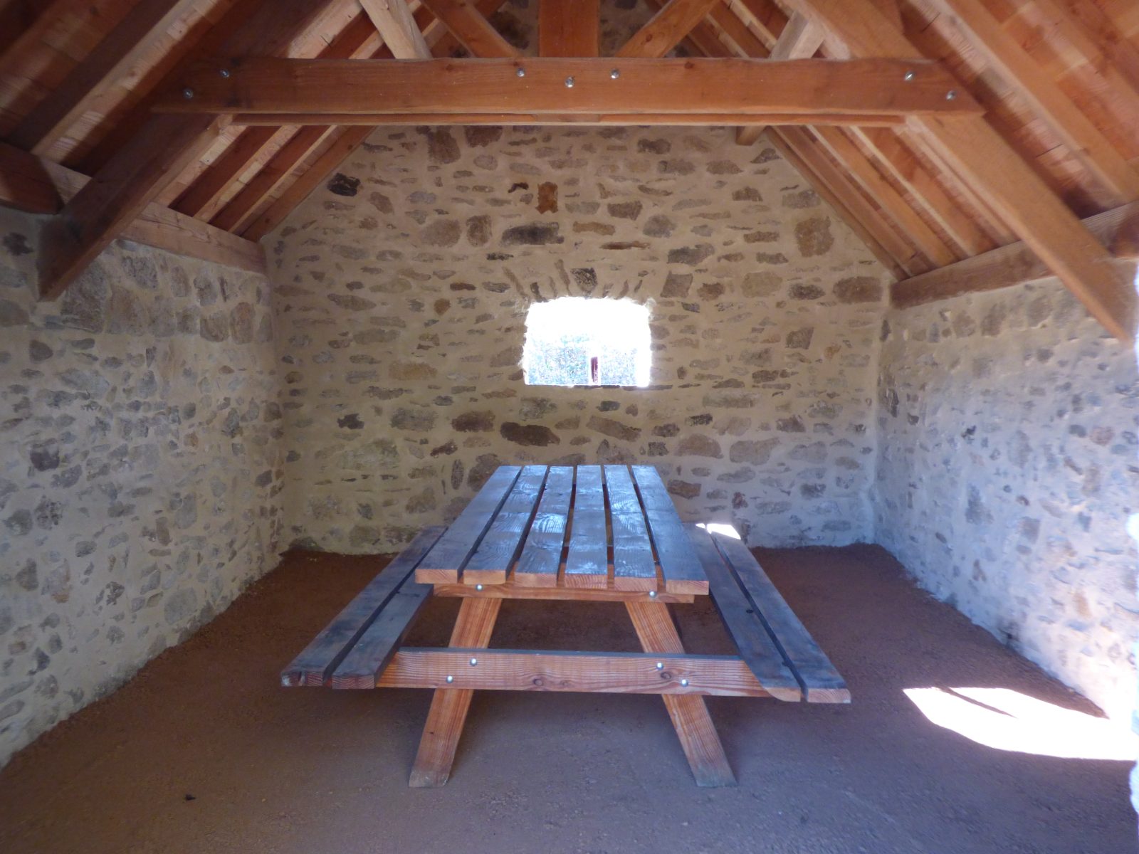 A l'abri d'un pailher récemment restauré, aire munie de 2 tables et d'un parking. Sur place un panneau vous racontera l'histoire du bâtiment.