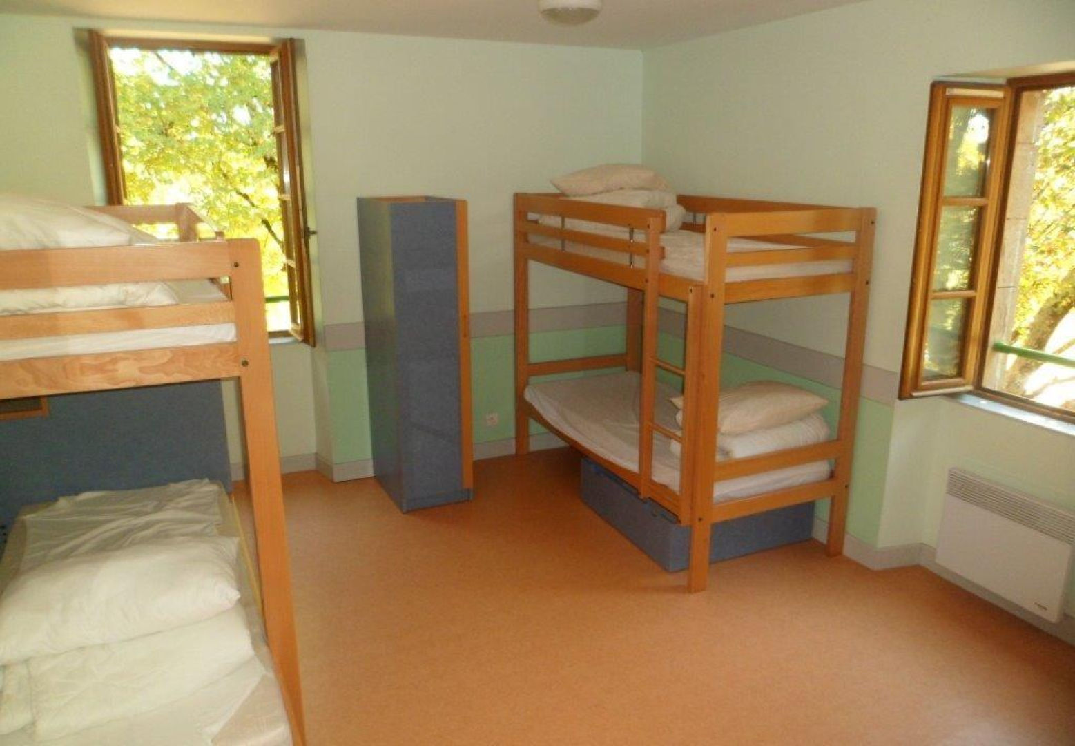 Conçue pour l'accueil de groupes, la structure principale dispose de deux salles à manger, une petite salle d'activités, et deux grandes salles de classe ou de réunion. Le bâtiment principal comprend 60 places réparties en 13 chambres : 32 places en chambres de 2 à 6 lits, et 28 places en chambres de 2 à 7 lits (totalement rénovée). Nous disposons également de 4 chalets de 5 ou 7 places et de 7 marabouts de 8 places avec sanitaires collectifs. Au cœur du domaine, une jolie piscine.