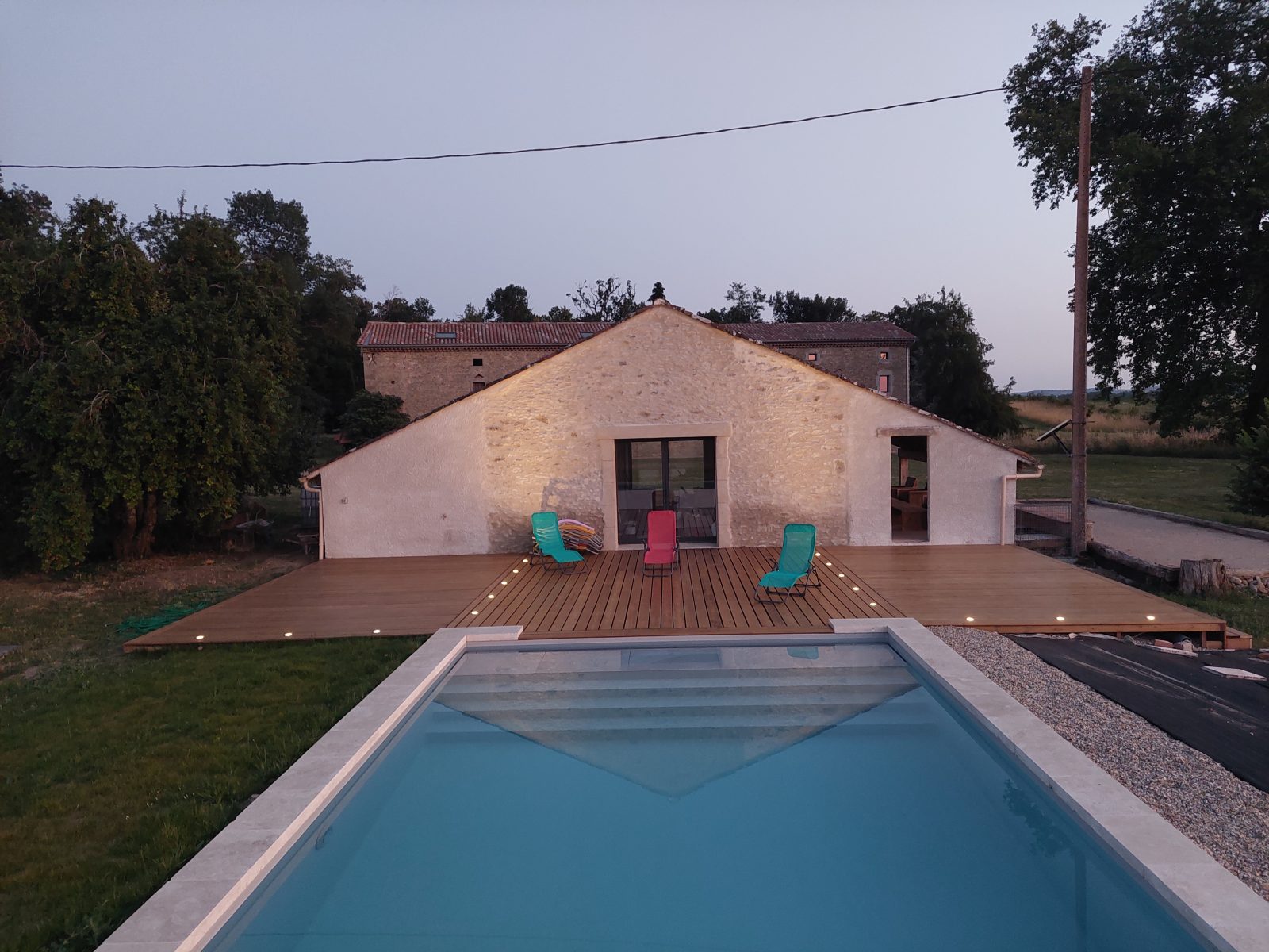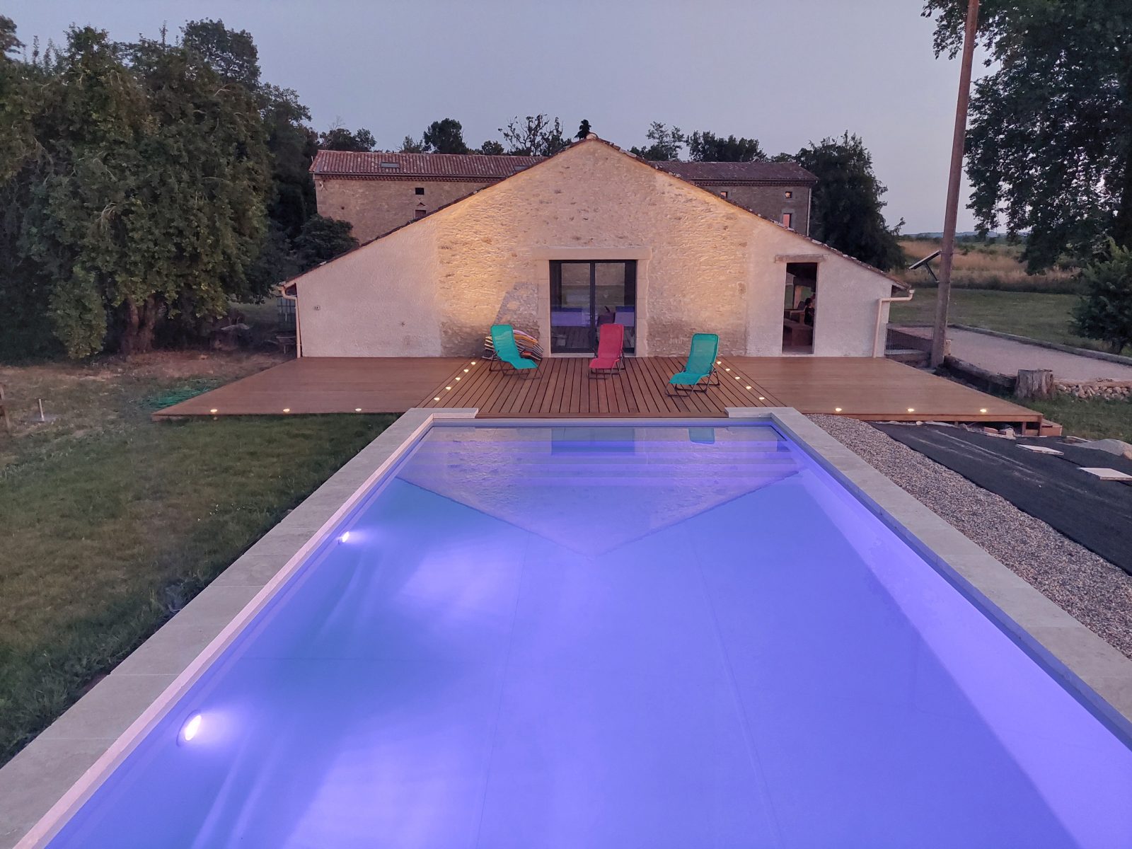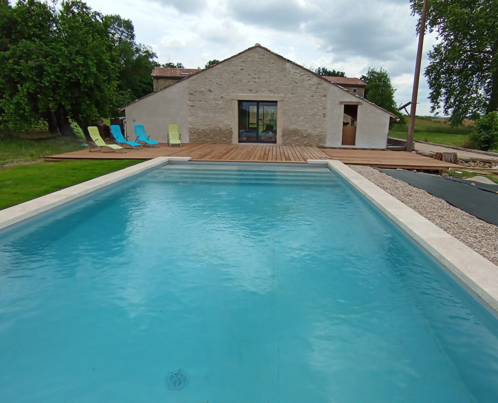 • Piscine 5x10 m partagée avec notre autre gîte (13 personnes max) et les propriétaires.