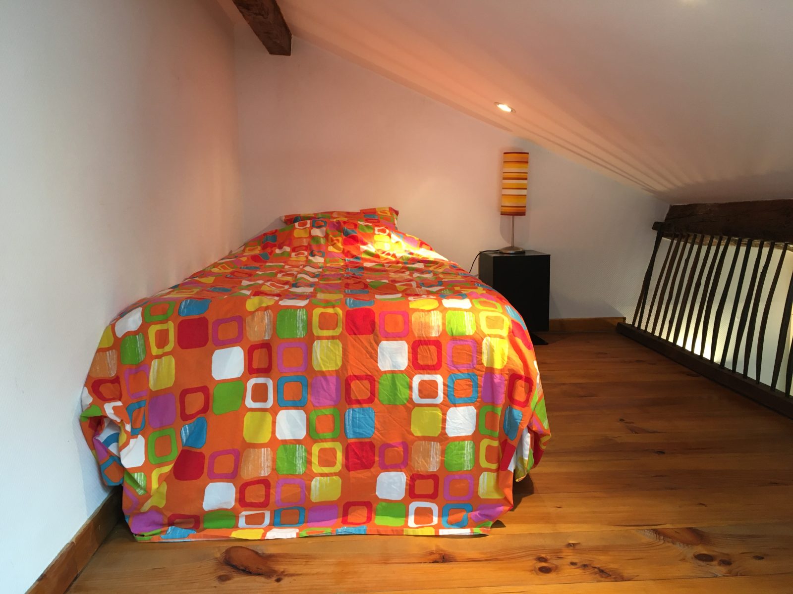• Mezzanine avec lit simple 90 cm (à l'usage d'un adulte ou d'un adolescent - accès déconseillé à un jeune enfant)