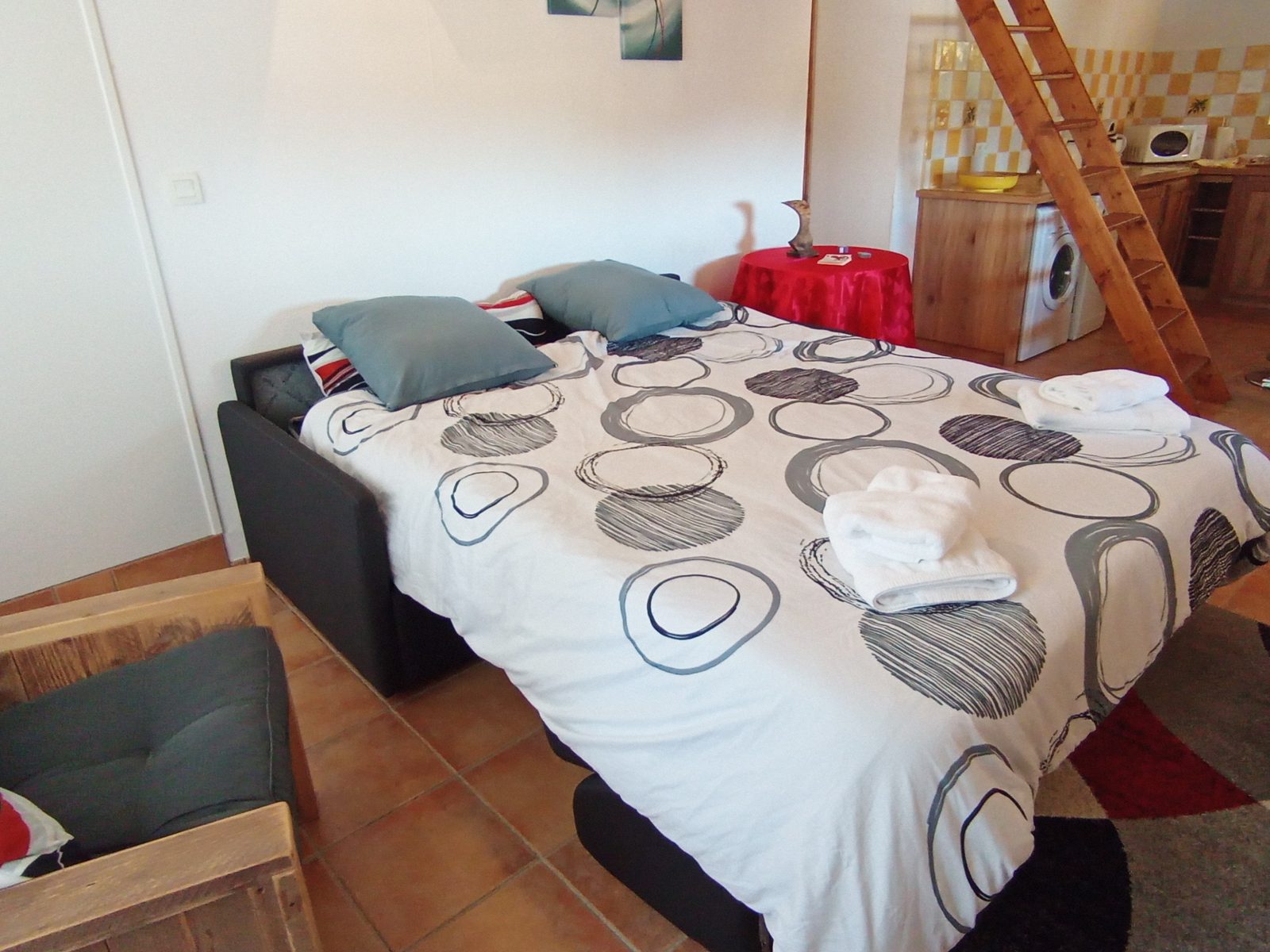 • Espace salon avec canapé-lit 160 cm, TV écran plat