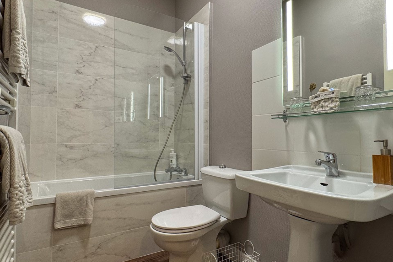 Au bout du couloir, la chambre 2 est un véritable petit cocon à l’ambiance vintage. Vous serez séduit par son tendre écrin tout de rose et de rotin vêtu, et sa salle de bain végétalisée.