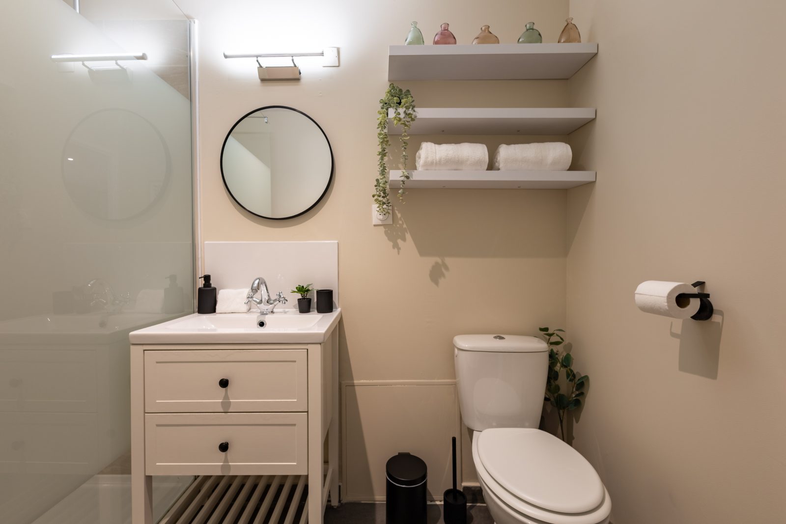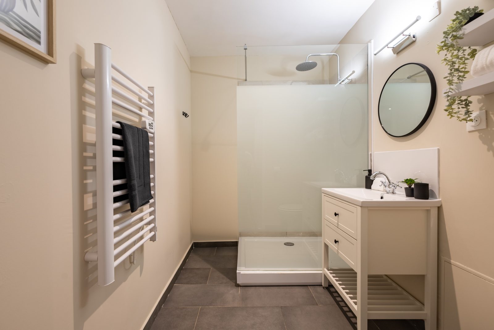 La cuisine dispose de tout le nécessaire pour le quotidien, et la salle de bain moderne complète ce cocon agréable et harmonieux.
