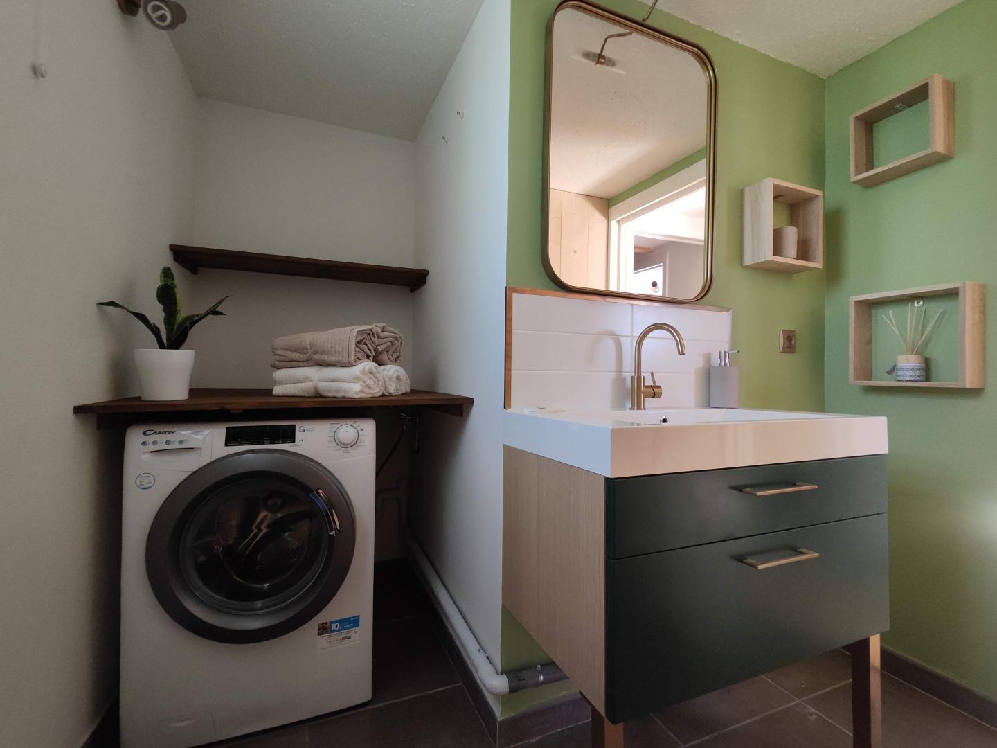 Vous disposez d'une salle d'eau avec douche à l'italienne et machine à laver, de WC séparés.