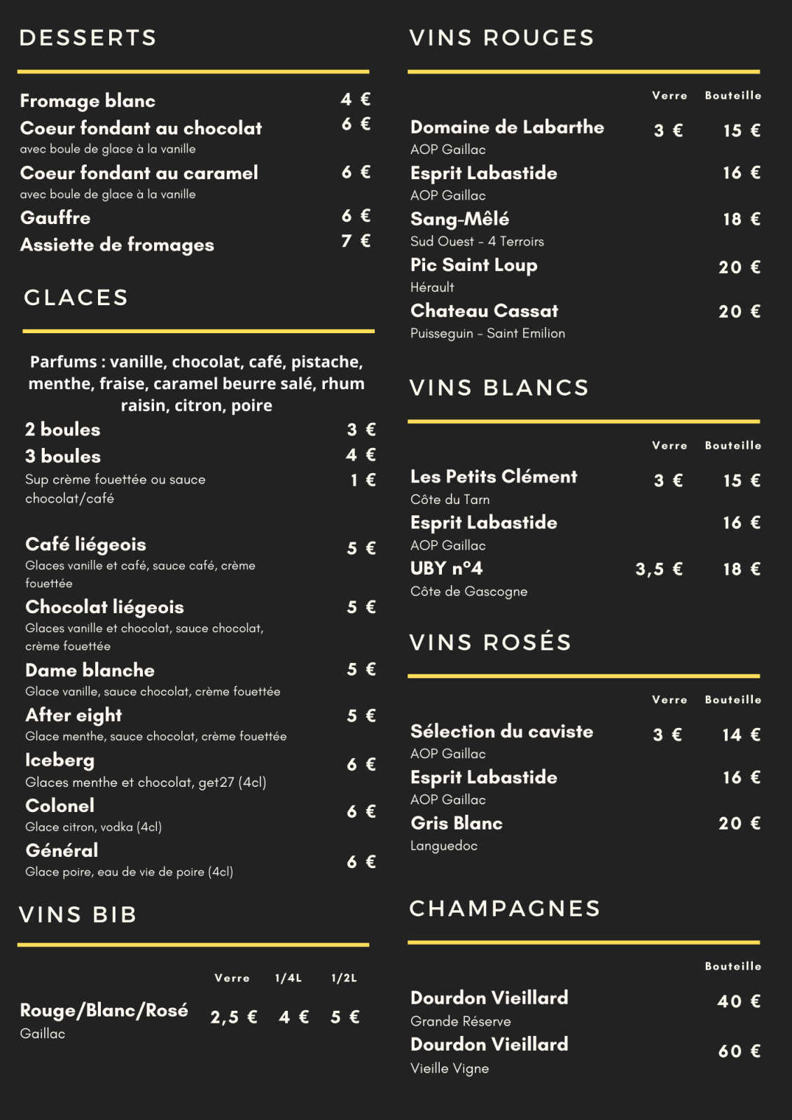 | A la carte (du 02/01/2026 au 31/12/2026) | Min : 10€ | Max : 18€ |
