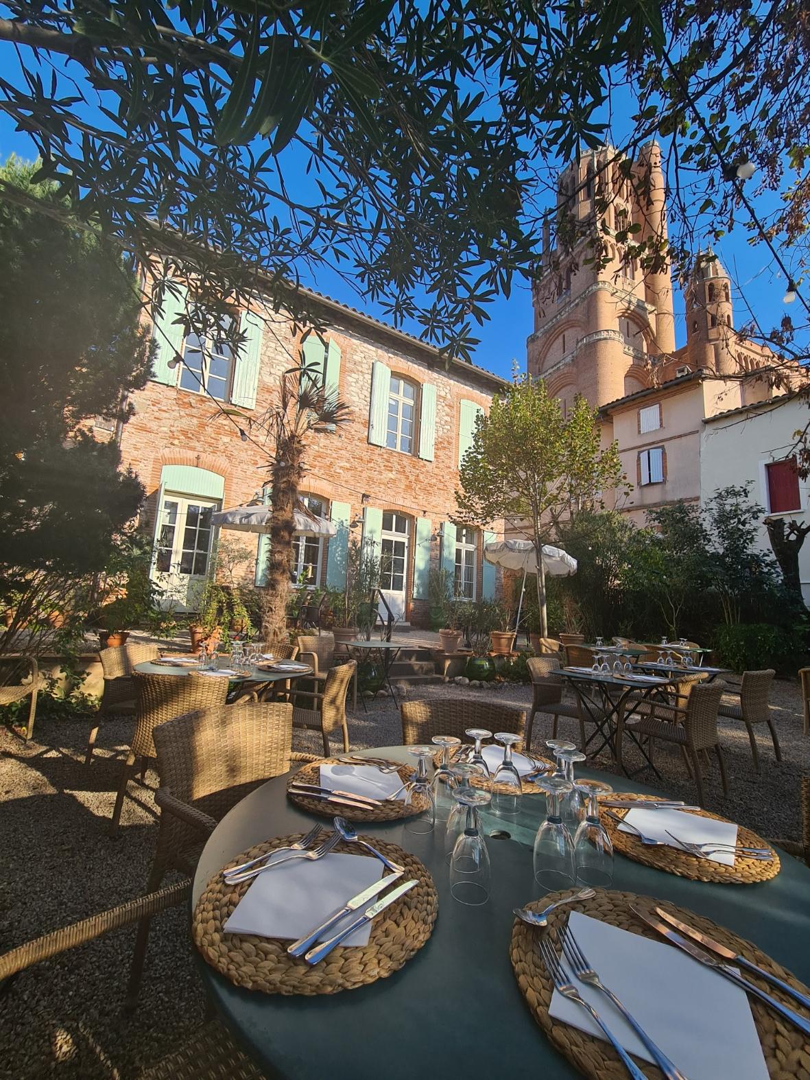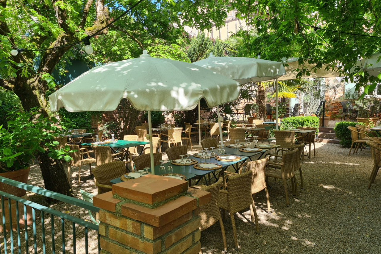 The Clos Sainte-Cécile is in the rue du Castelvieil which faces the bell tower of the cathedral. From the restaurant gardens, over the rooftops, the view of the cathedral is the same as a postcard. The chef serves traditional cuisine with menus that vary depending on the seasons.